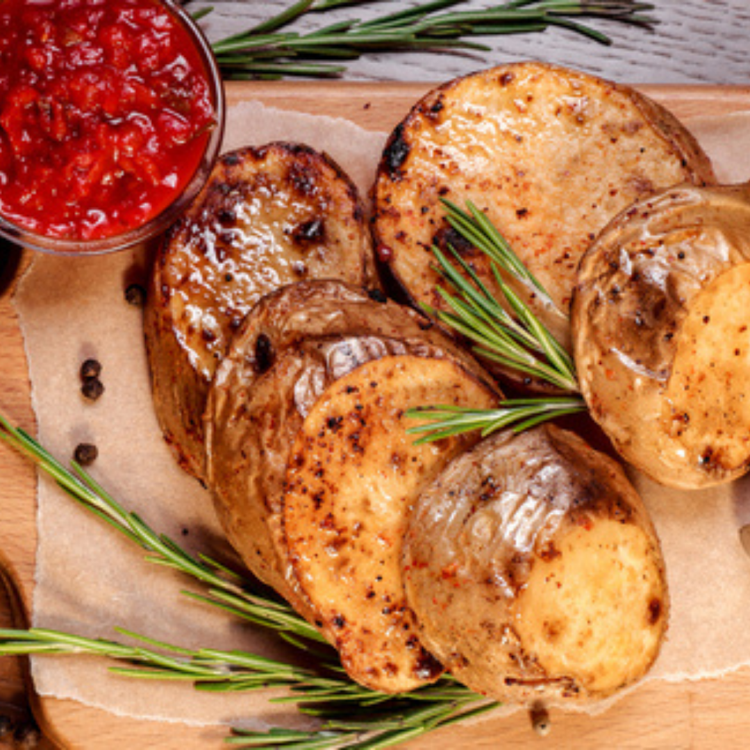 • Grilled Potatoes with Romesco Sauce