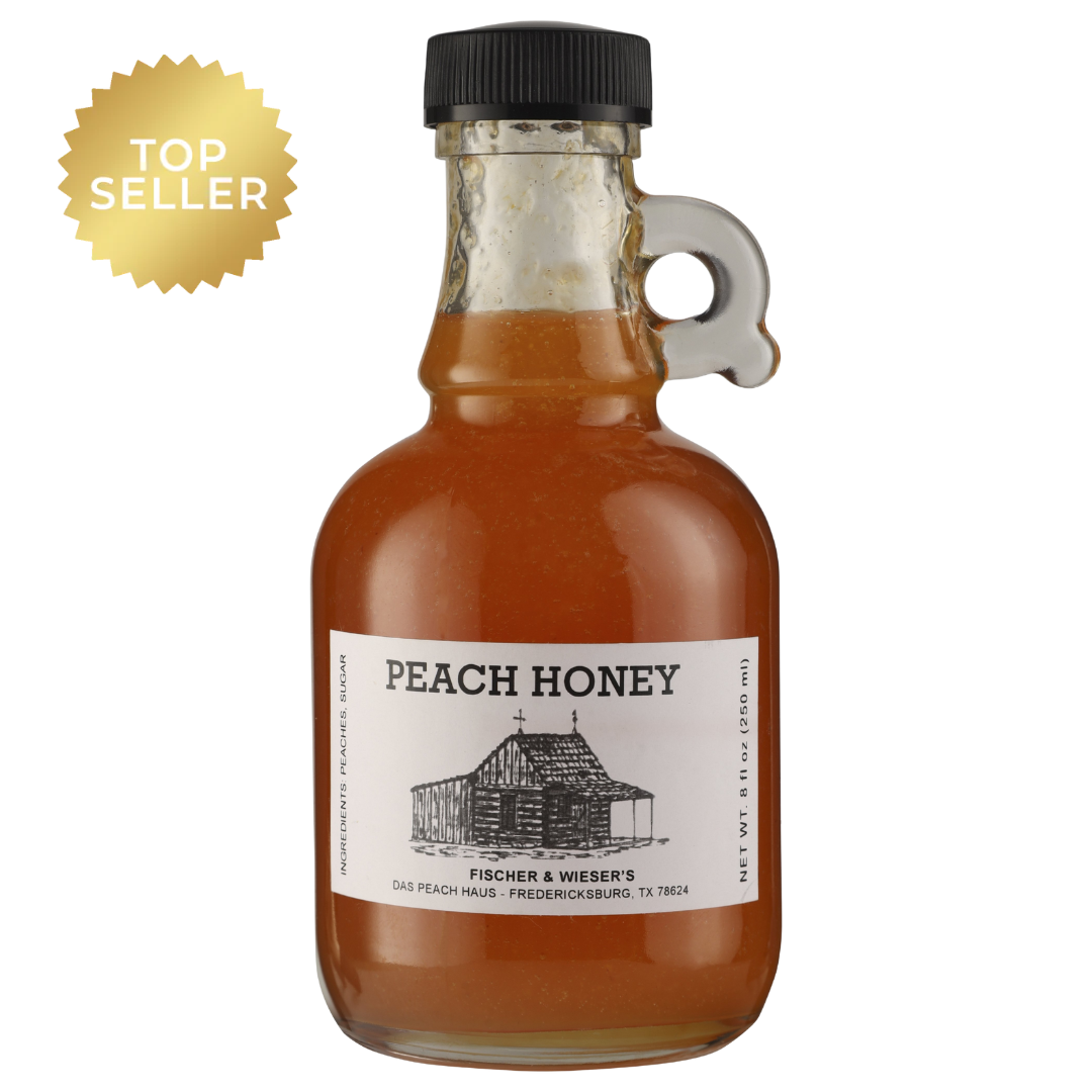 Fischer & Wieser’s Hill Country Peach Honey Syrup transforms everyday dishes into something special. Made with just peaches and cane sugar, this golden syrup offers the ripe sweetness of Texas peaches in every pour. Whether it’s your Sunday morning pancakes or a scoop of vanilla ice cream, this syrup delivers pure, peachy goodness from the heart of the Hill Country.