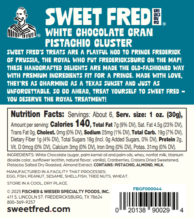 White Chocolate Cranberry Pistachio Cluster 6oz Bag