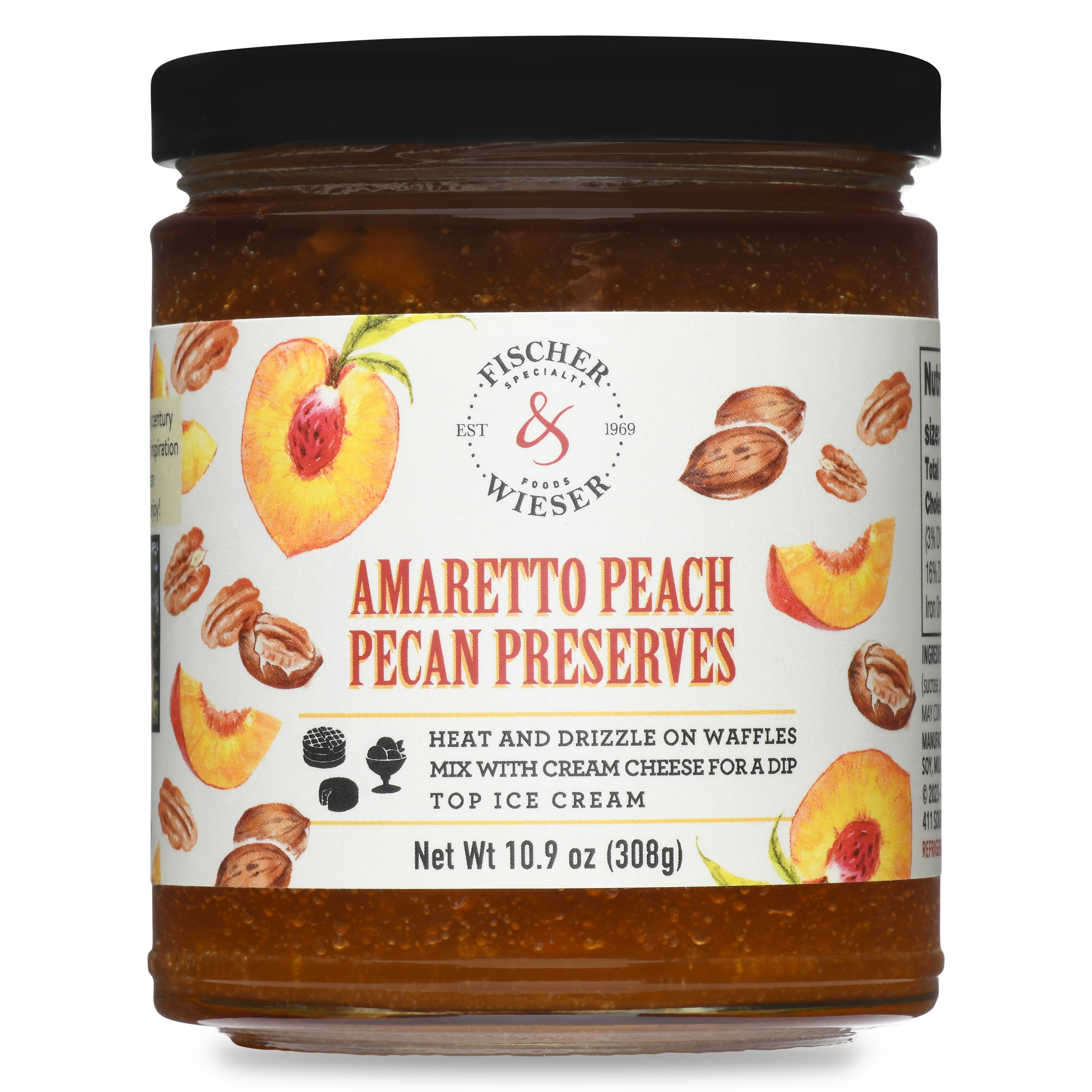 Fischer & Wieser’s Amaretto Peach Pecan Preserves is one of our most beloved flavors—a recipe that tastes like pure southern comfort food captured in a jar. By blending ripe, juicy peaches with buttery pecans and the warm essence of almond, we’ve created a preserve that balances sweet, nutty, and fruity notes in perfect harmony. This unique combination, amaretto peach jam pays homage to cherished Southern desserts and traditions, where fruit, nuts, and hospitality come together to create something unforgettable.