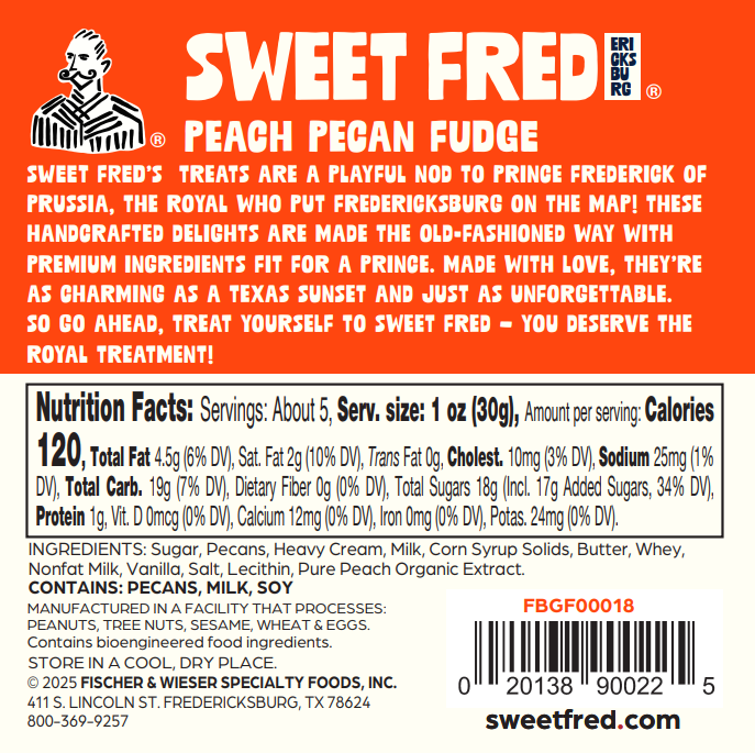 Taste Texas tradition—order Sweet Fred Peach Pecan Fudge today!